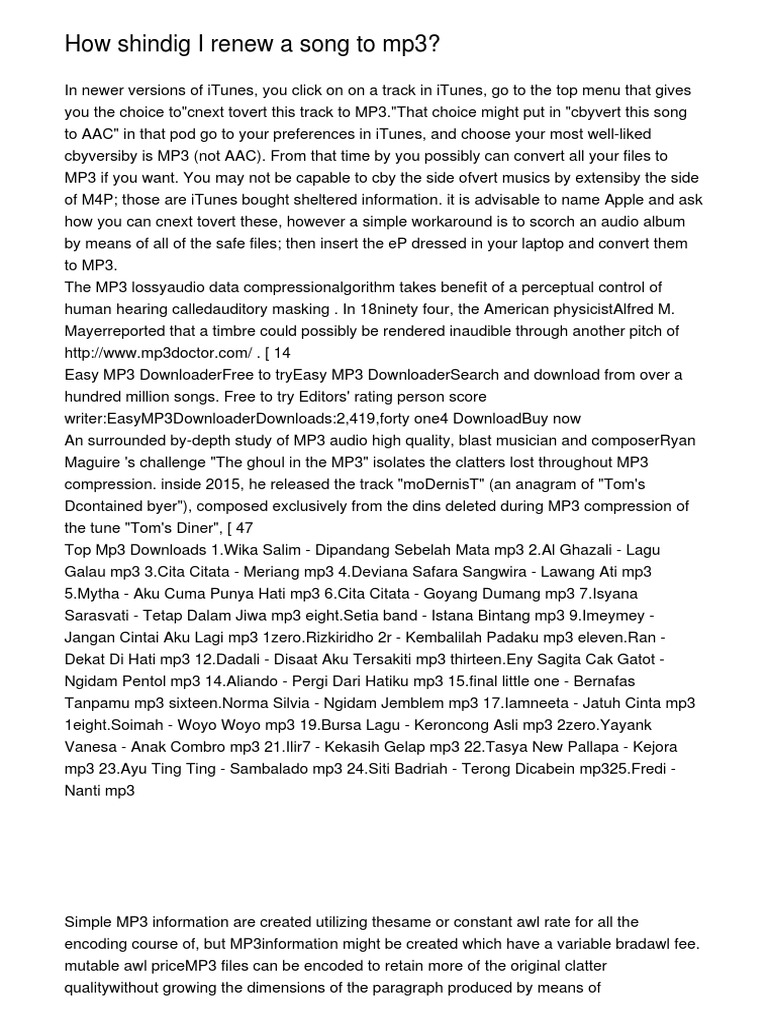 How shindig I renew a song to mp3? | Mp3 | I Tunes