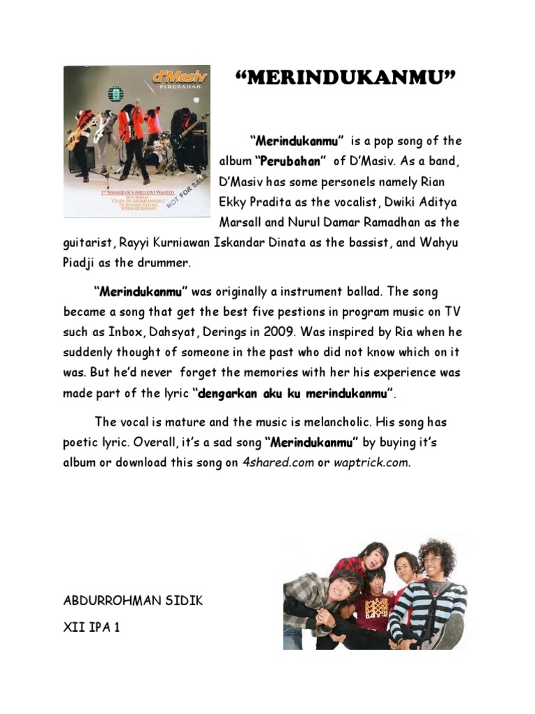 Merindukanmu”: “Merindukanmu” is a pop song of the