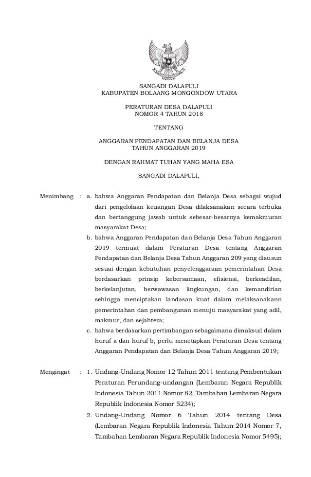 Perdes No. 4 tahun 2018 apbdes TA 2019
