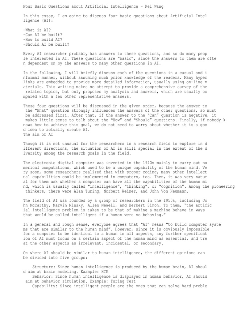 Four Basic Questions About Artificial Intelligence – Pei Wang | Artificial Intelligence | Technology