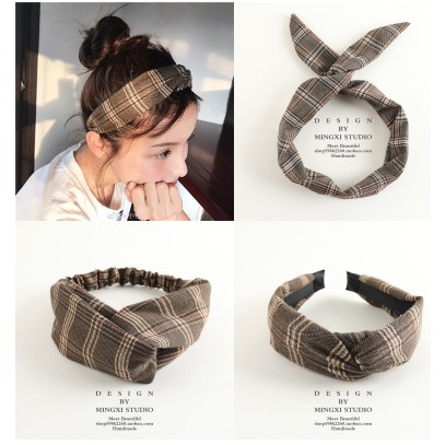 Kain korea lebar kotak-kotak hiasan kepala sederhana liar manis …