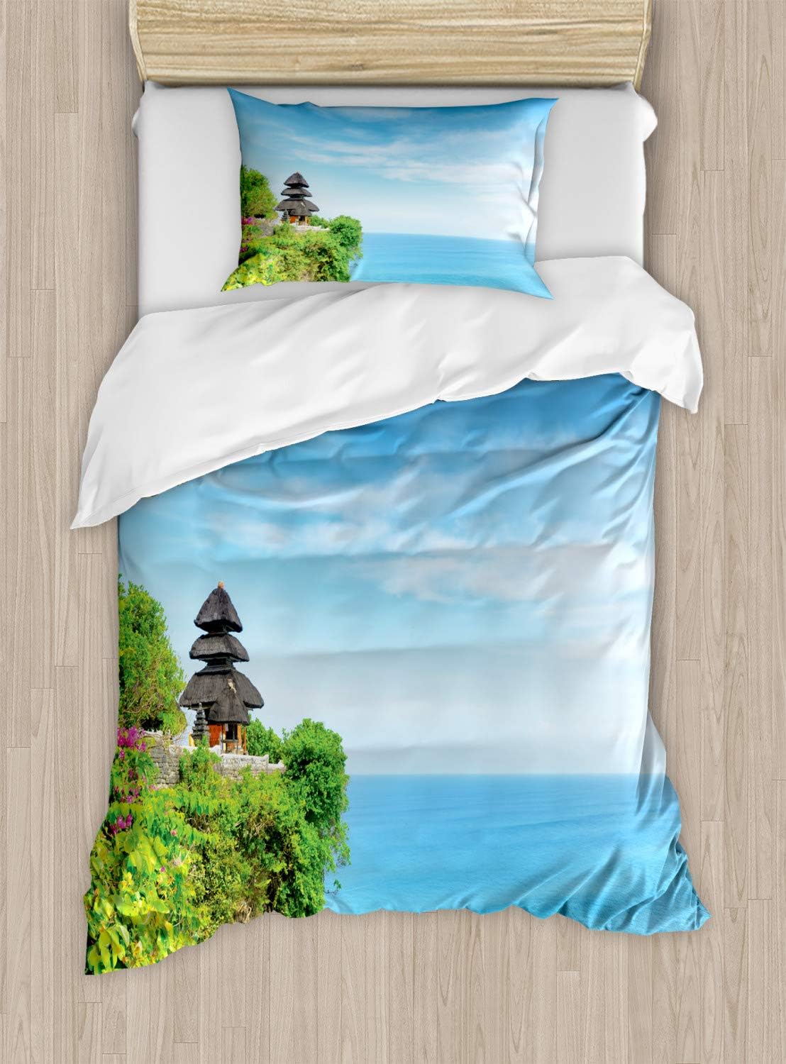 Amazon.com: Ambesonne Balinese Duvet Cover Set, Uluwatu Building Bali Indonesia Seacoast Cliff Horizon Summer Seascape Nature, Decorative 2 Piece Bedding Set with 1 Pillow Sham, Twin Size, Green and Blue: Home &