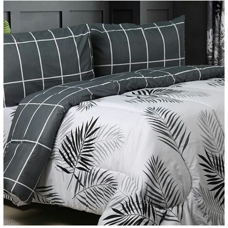 BEDCOVER MURAH 180x200 queen bed selimut kotak kotak daun putih …