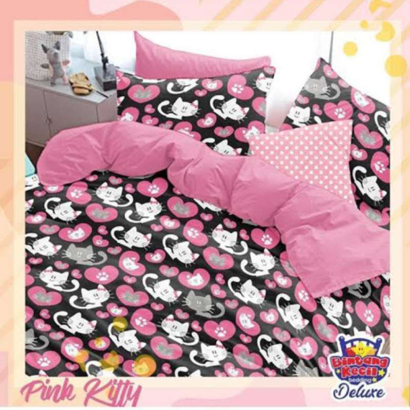 Jual Ellenov N Pink Kitty Hitam ( Sprei Bedcover ) Bahan Katun …