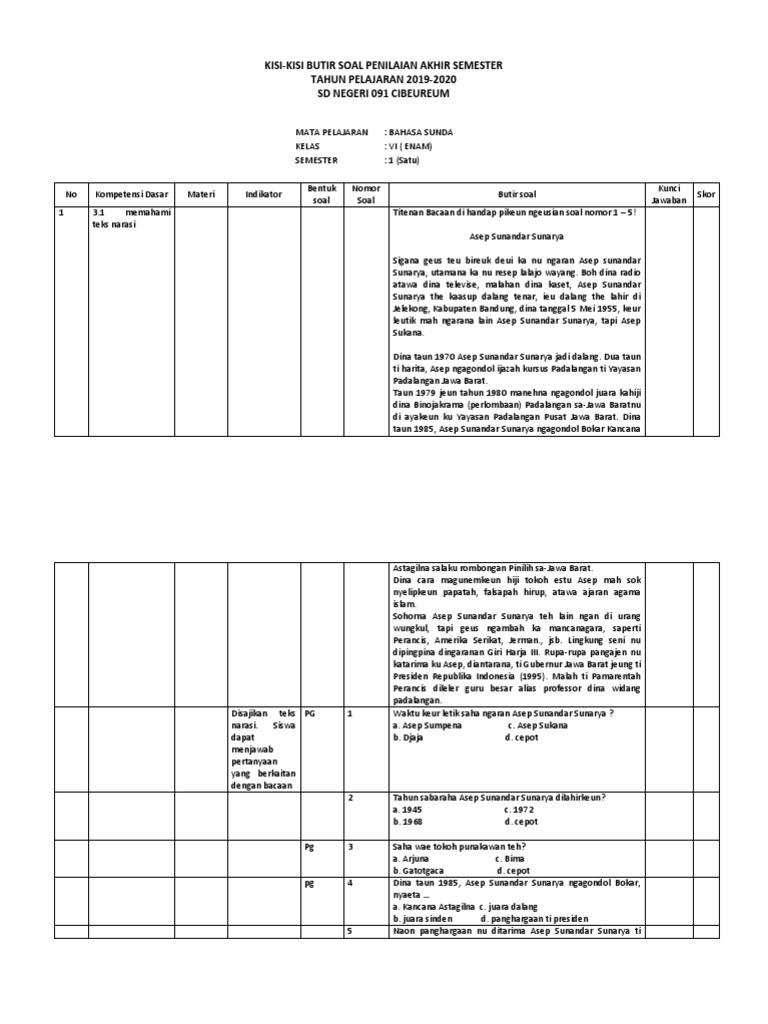 KISI-KISI SOAL PAS BASA SUNDA
