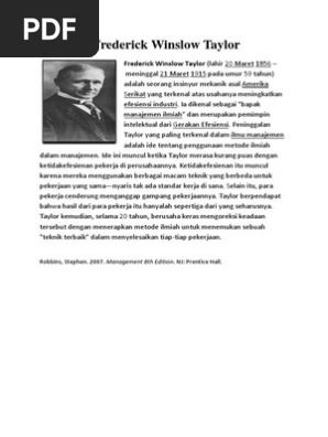 Frederick Taylor pendiri organisasi ilmiah tenaga kerja dan manajemen - Manajemen - 2020