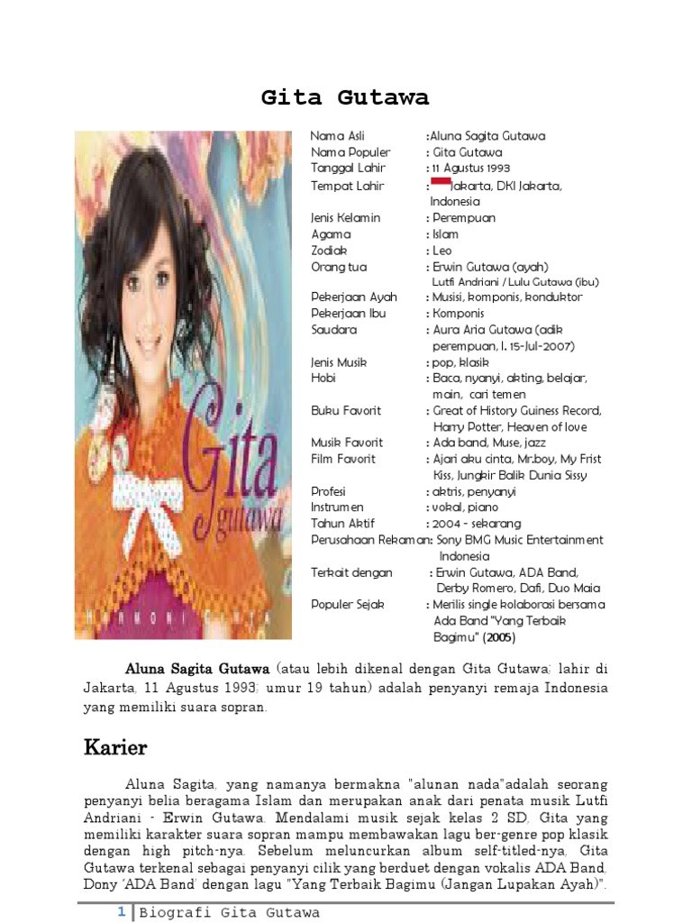 Biografi Gita Gutawa Dalam Bahasa Inggris