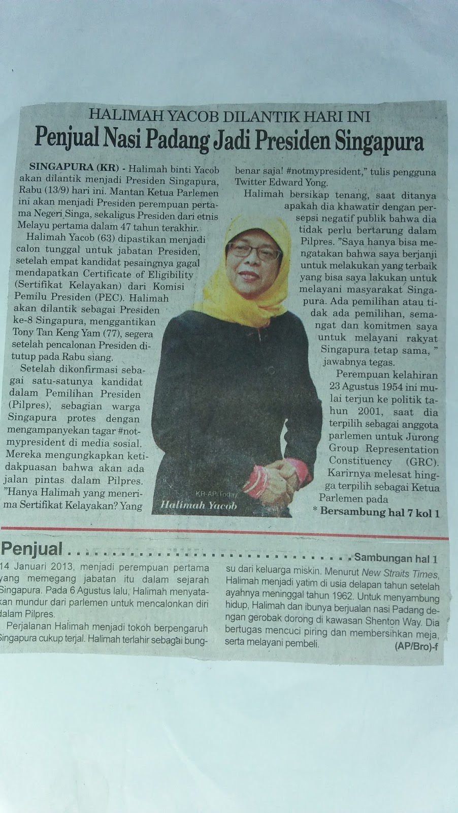 RESENSI ARTIKEL PRESIDEN PEREMPUAN PERTAMA SINGAPURA ~ Move On Psikologi UP45