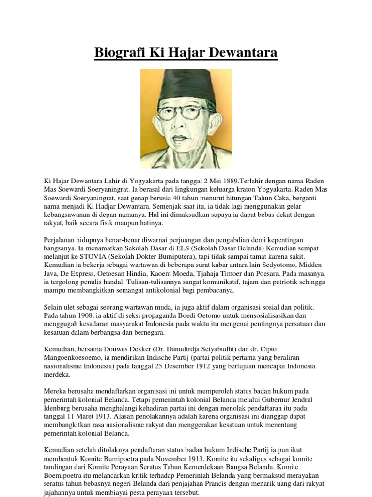 DOC) Biografi singkat ki hajar dewantara Biografi Ki Hajar Dewantara | Duta Bellia - Academia.edu