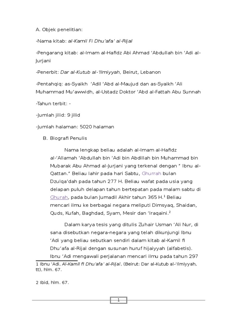 Studi Kitab Al-Kamil fi Dhu ‘afa al-Rijal