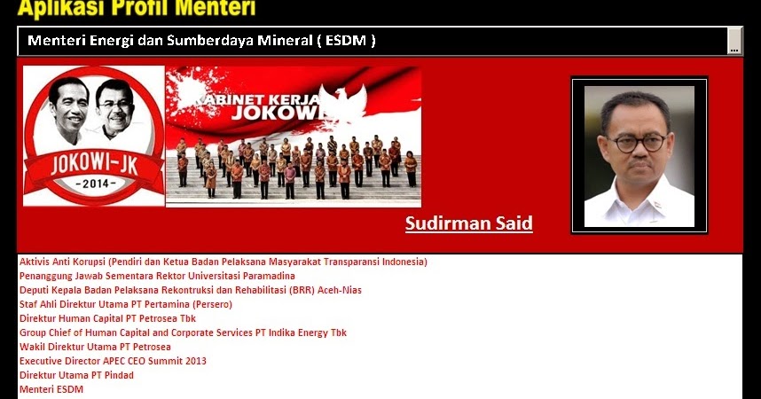 300 Rumus Excel: Aplikasi Profil Menteri Kabinet Kerja JOKOWI-JK pake Excel
