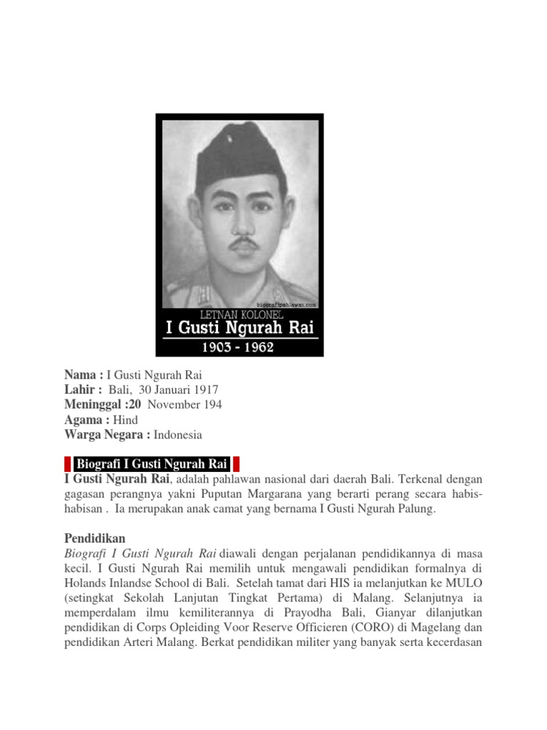 Biodata Pahlawan Indonesia - I Gusti Ngurah Rai - Wattpad