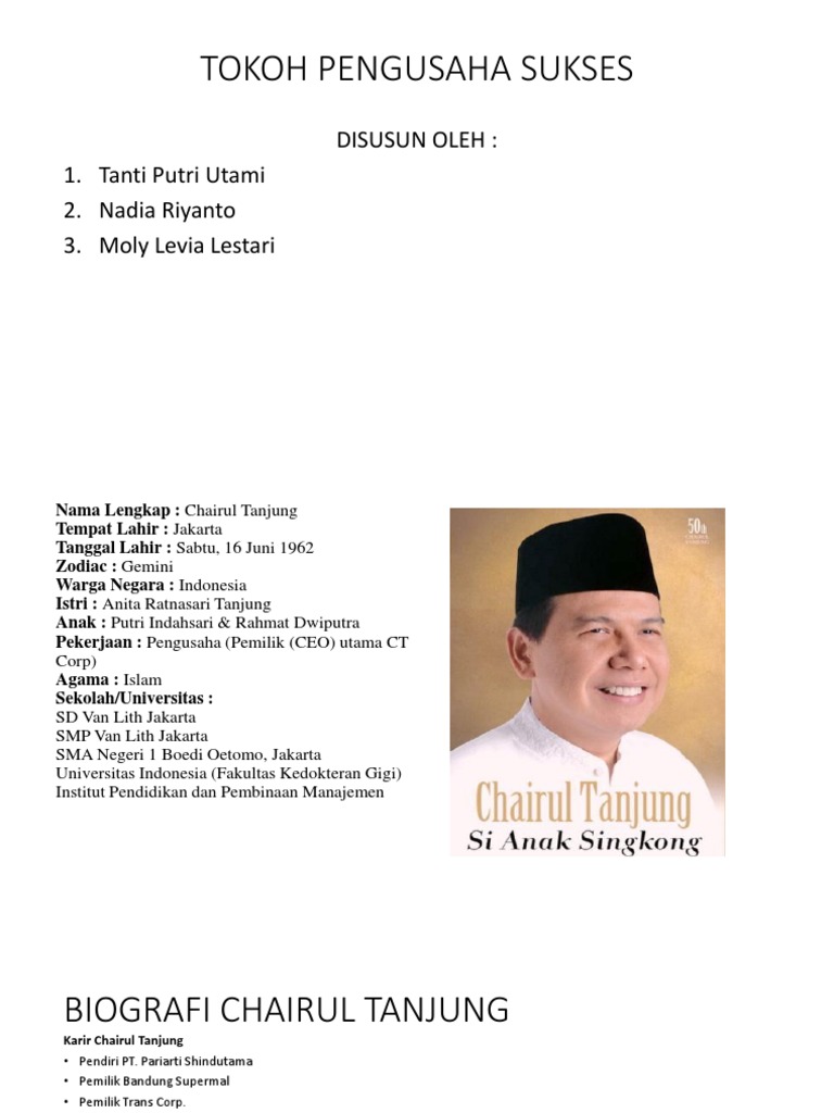 Tokoh Pengusaha Sukses: Disusun Oleh: 1. Tanti Putri Utami 2. Nadia Riyanto 3. Moly Levia Lestari