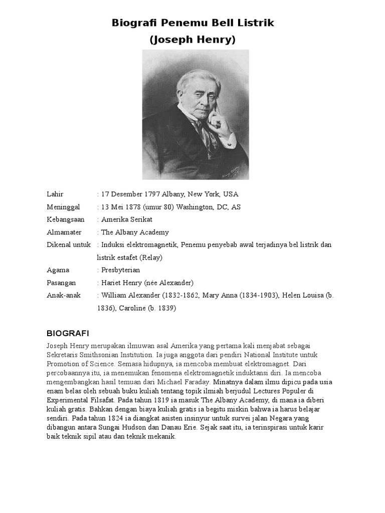 BIOGRAFI PENEMU: Joseph Henry Penemu prekursor untuk listrik bel dan listrik estafet