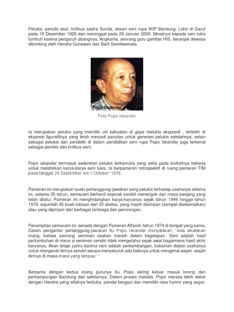 1 BAB I PENDAHULUAN A. Latar Belakang Popo Iskandar adalah seorang pelukis, kritikus, dan pendidik seni yang merupakan salah sat