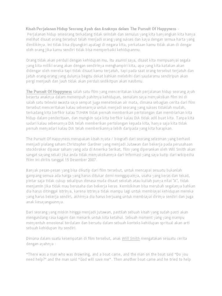 Kisah Perjalanan Hidup Seorang Ayah Dan Anaknya Dalam the Pursuit of Happyness