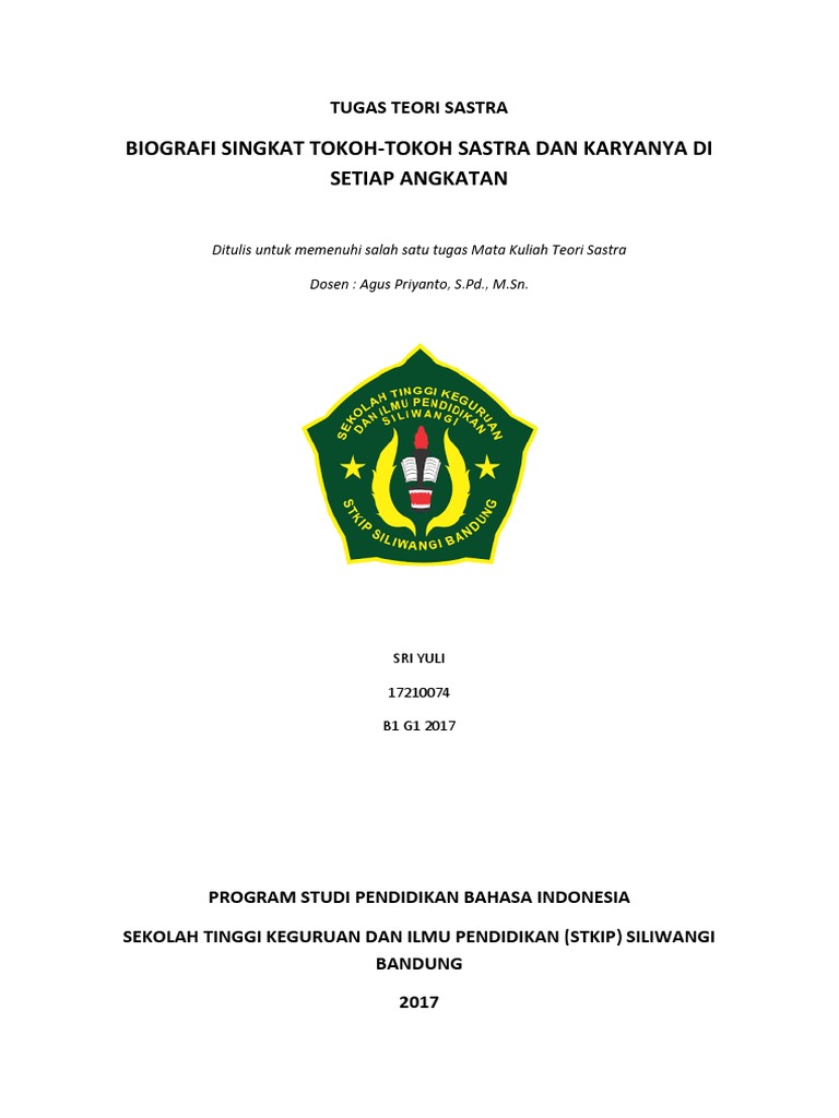 BIOGRAFI SINGKAT TOKOH-TOKOH SASTRA DAN KARYANYA DI SETIAP ANGKATAN - PDF Free Download