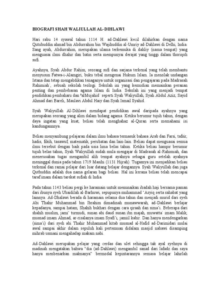 Biografi Shah Waliallah Ad Dihlawi - [PDF Document]