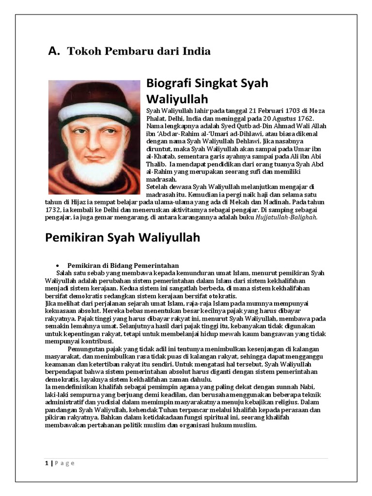 Tokoh dan pemikiran Syah Waliyullah.docx - Tokoh dan pemikiran Syah Waliyullah Muhammad Iqbal Al Maududi A Shah Waliyullah a Riwayat Hidup Shah | Course Hero