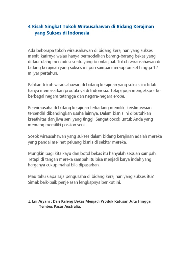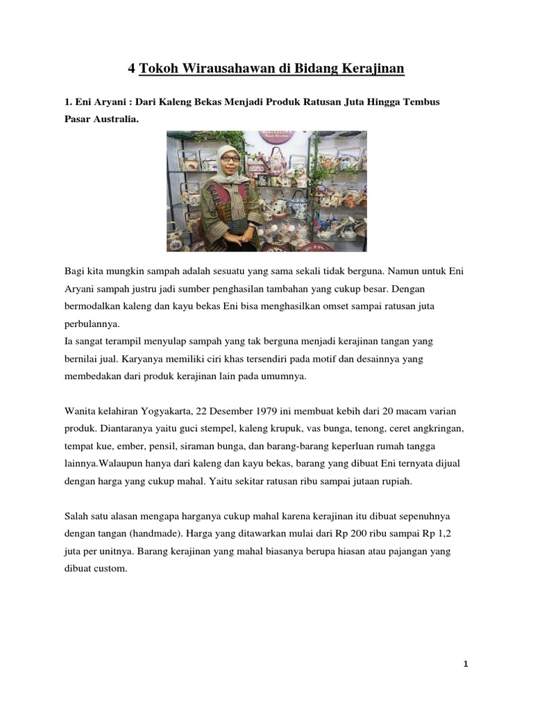 DOC) Profil Pengusaha Sukses di bidang Kerajinan | Hawa Rizka - Academia.edu