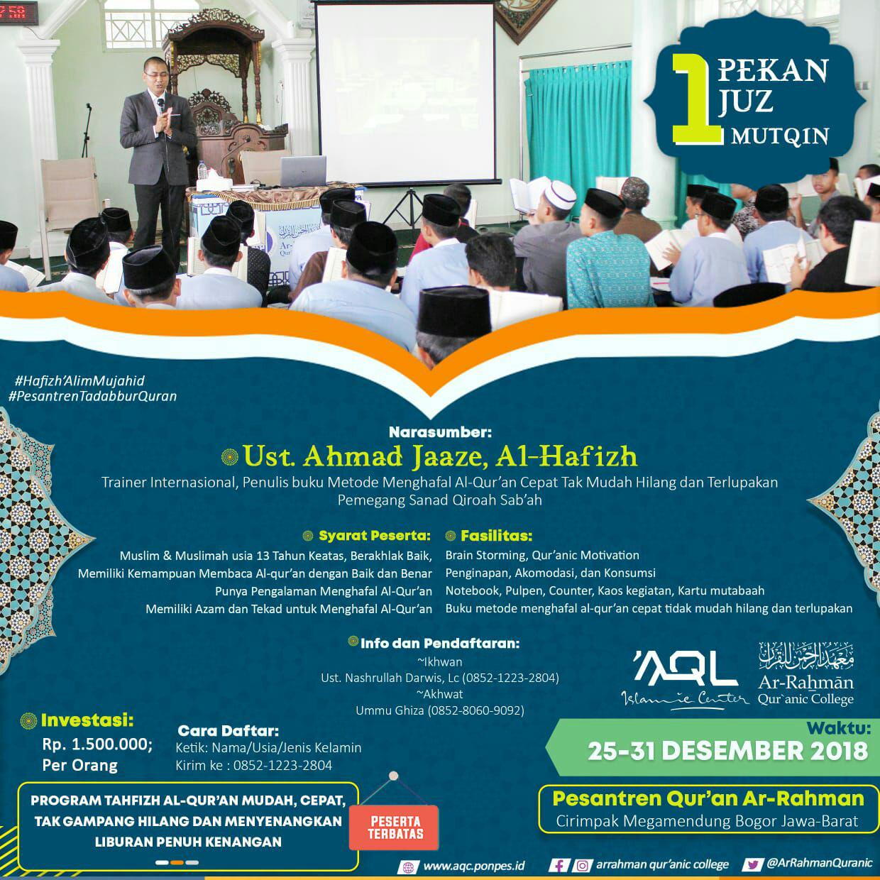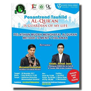 Event Seminar & WorkShop Menghafal Quran Ustad Ahmad Jaaze Al Hafidz - IDE IDE INOVATIF DALAM MENGHAFAL QURAN