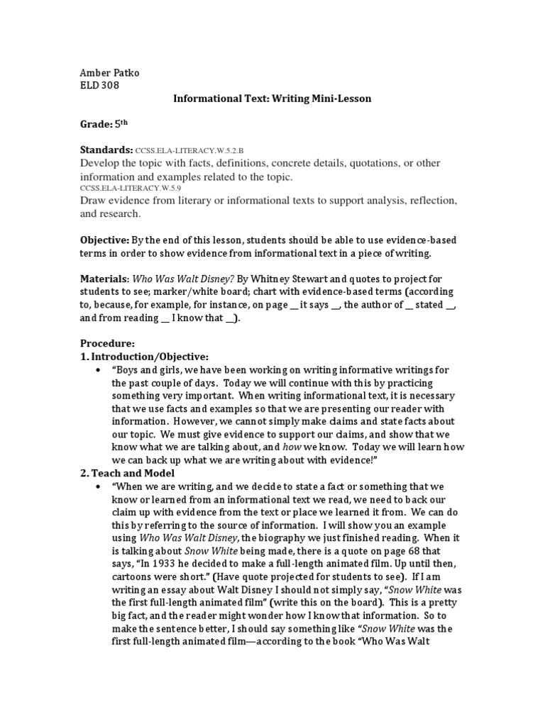 writing informational text mini lesson | Disneyland | Walt Disney