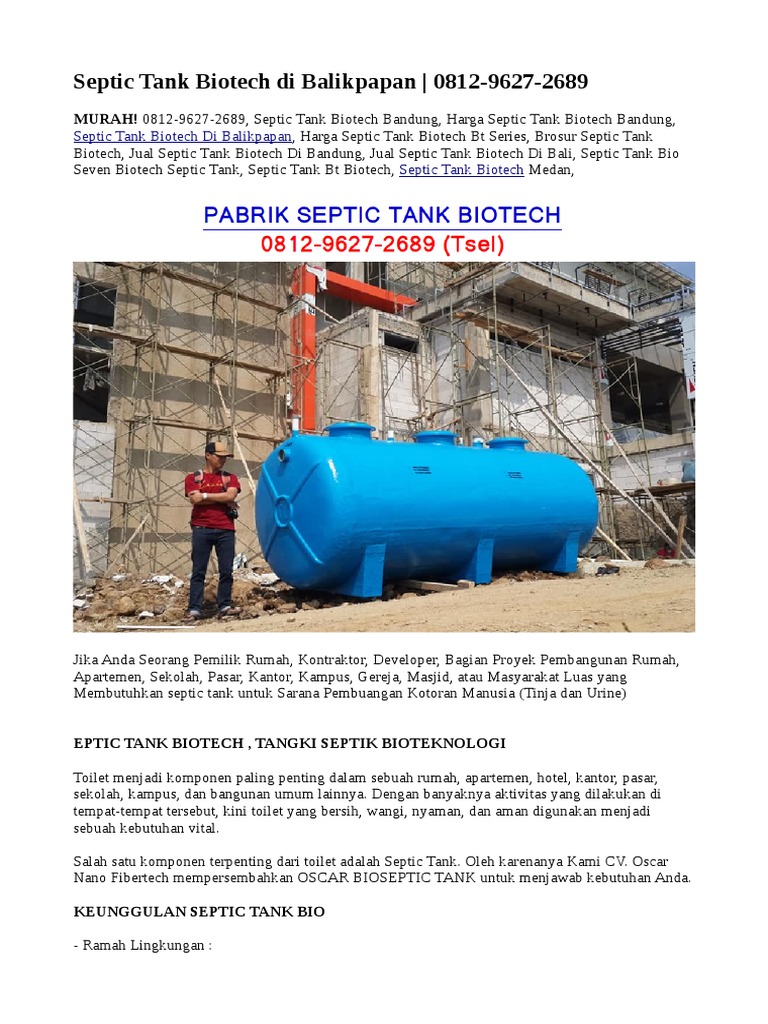 0812-9627-2689 (Tsel), Pabrik Septic Tank Bio: Septic Tank Biotech Di Balikpapan | 0812-9627-2689