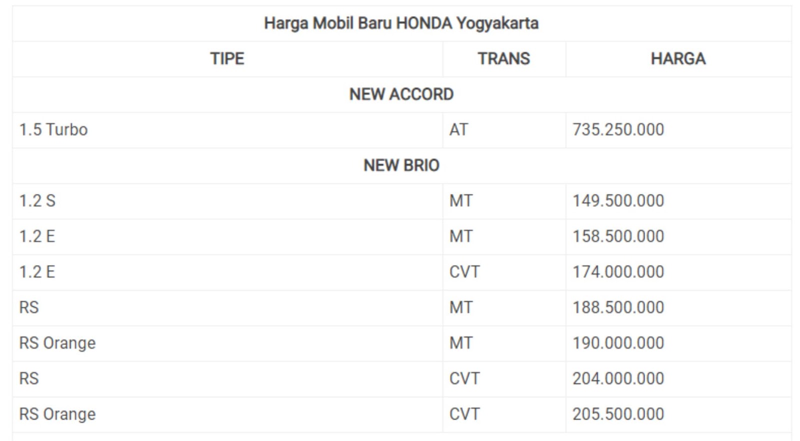 PRICE LIST HONDA-jogja - Dealer Mobil Honda Yogyakarta