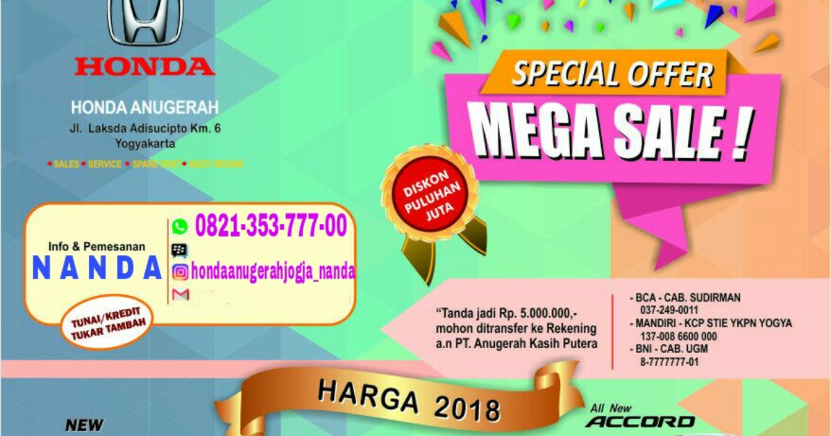 Brosur Harga Mobil Honda Agustus 2018 di Jogja | Honda Anugerah Jogja | 0821-3537-7700