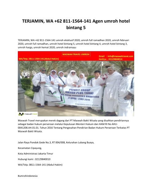 TERJAMIN, WA +62 811-1564-141 Agen umroh hotel bintang 5