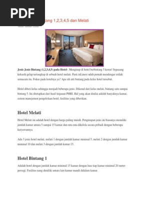 Beda Hotel Bintang 1,2,3,4,5 dan Melati