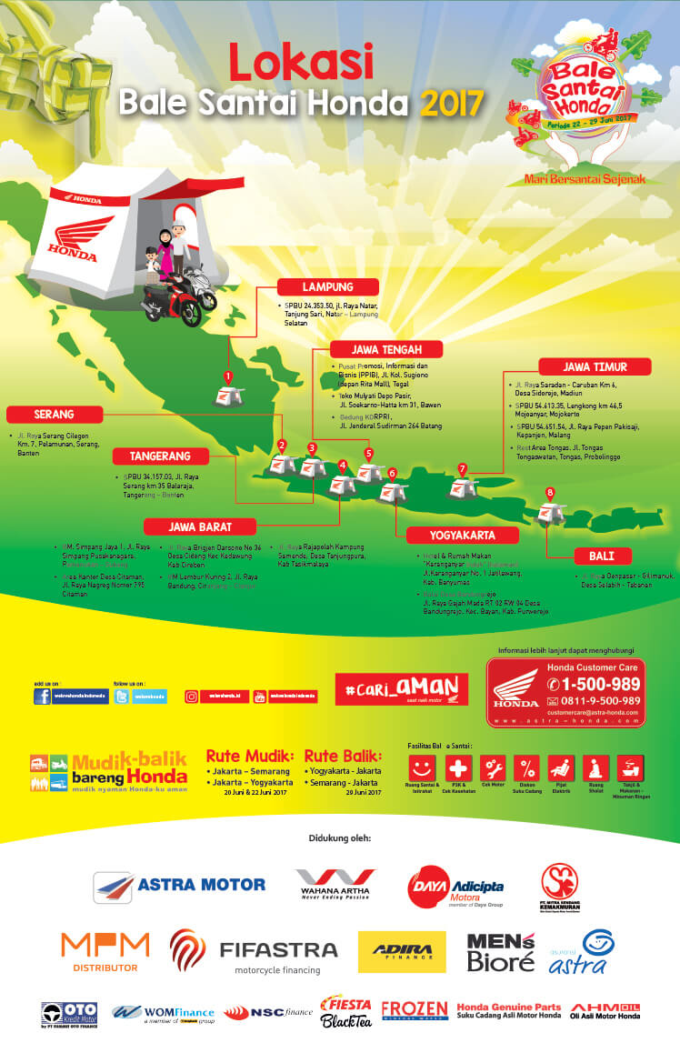 Honda Siagakan Posko Pemudik Motor. Service Saat Ramadhan Dapat Asuransi Rp10 juta