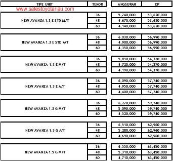 Brosur Harga Kredit Mobil Toyota Avanza Terbaru Simulasi Cicilan