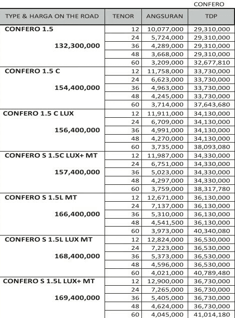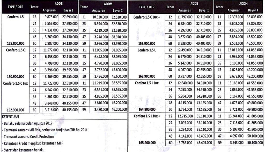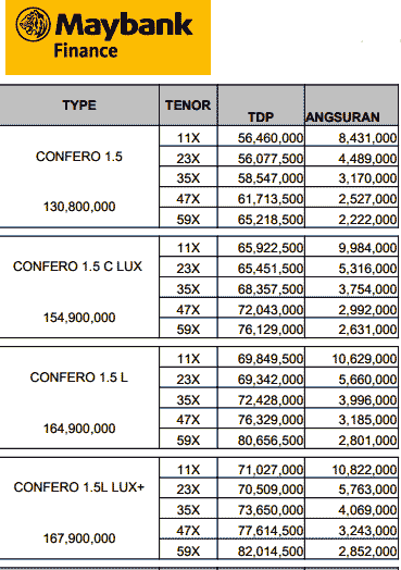Tabel Paket Kredit Wuling Confero Dp Murah | Brosur, Mobil baru