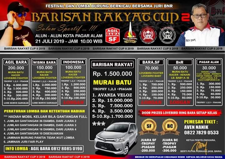 BARISAN RAKYAT CUP PAGAR ALAM MINGGU 21 JULI 2019 - lombaburung.com