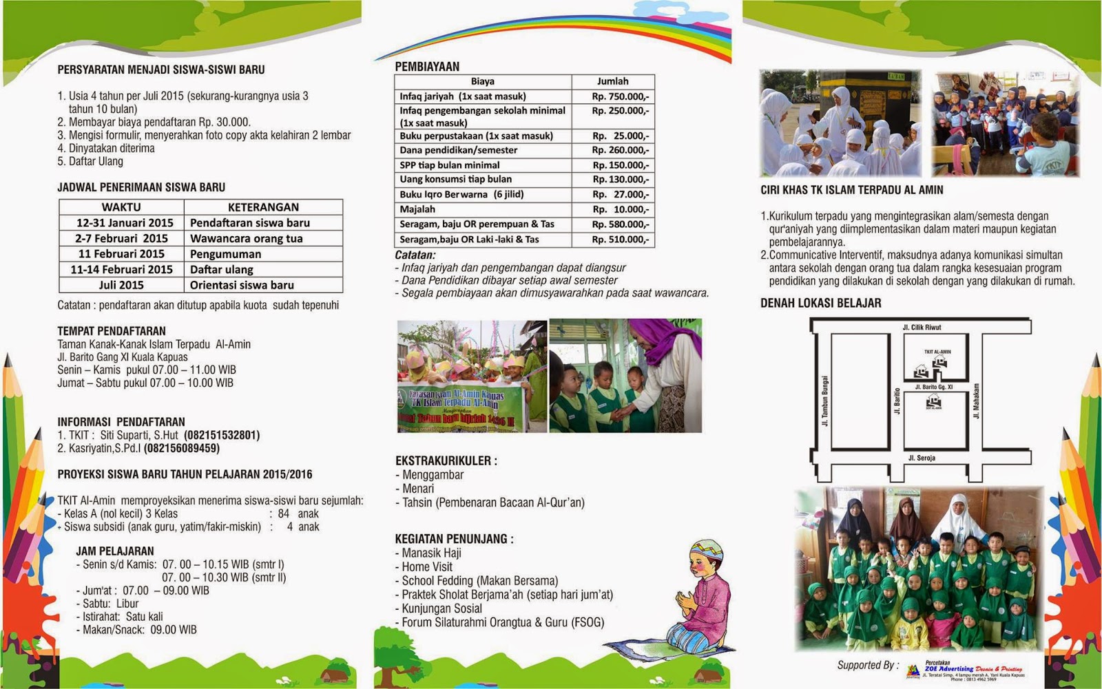Brosur Penerimaan Murid Baru TKIT Al-Amin Kapuas Tahun Ajaran 2015/2016