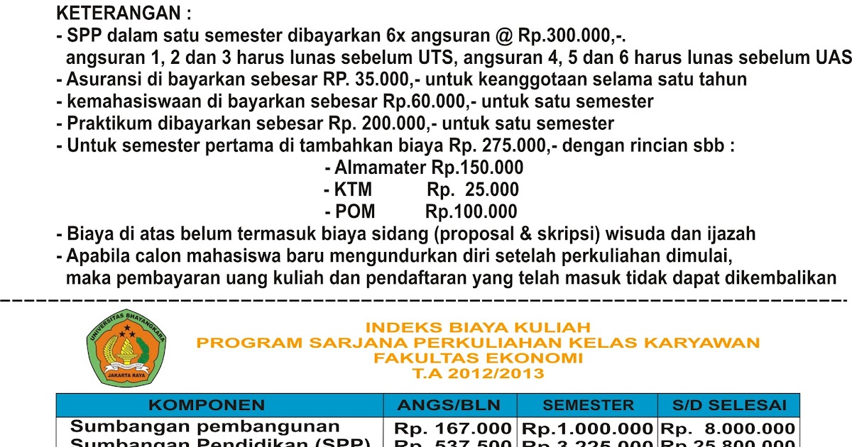 fakultas ekonomi ubhara jaya: BIAYA KULIAH