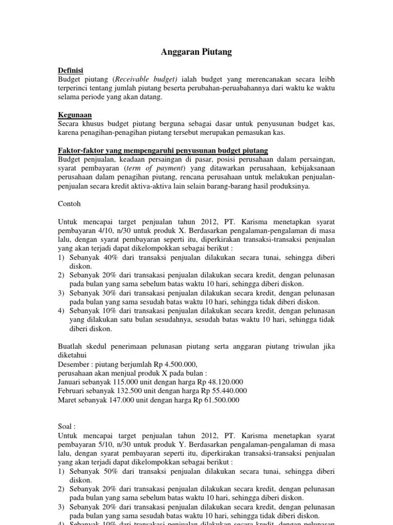 Anggaran Perusahaan : Anggaran Piutang Dan Anggaran Kas