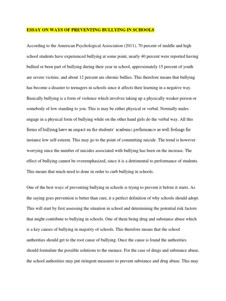 Essay on Ways of Preventing Bullying in Schools | Bullying | Interpersonal Relationships