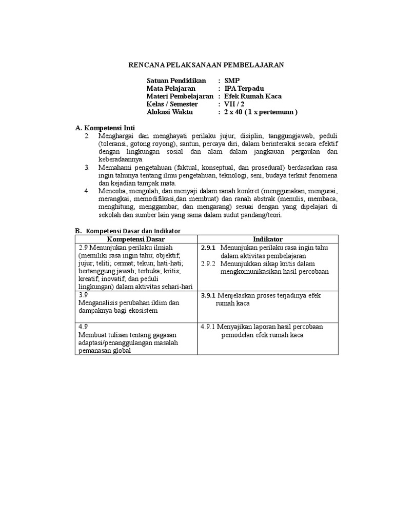 Rpp Efek Rumah Kaca New Bismillah