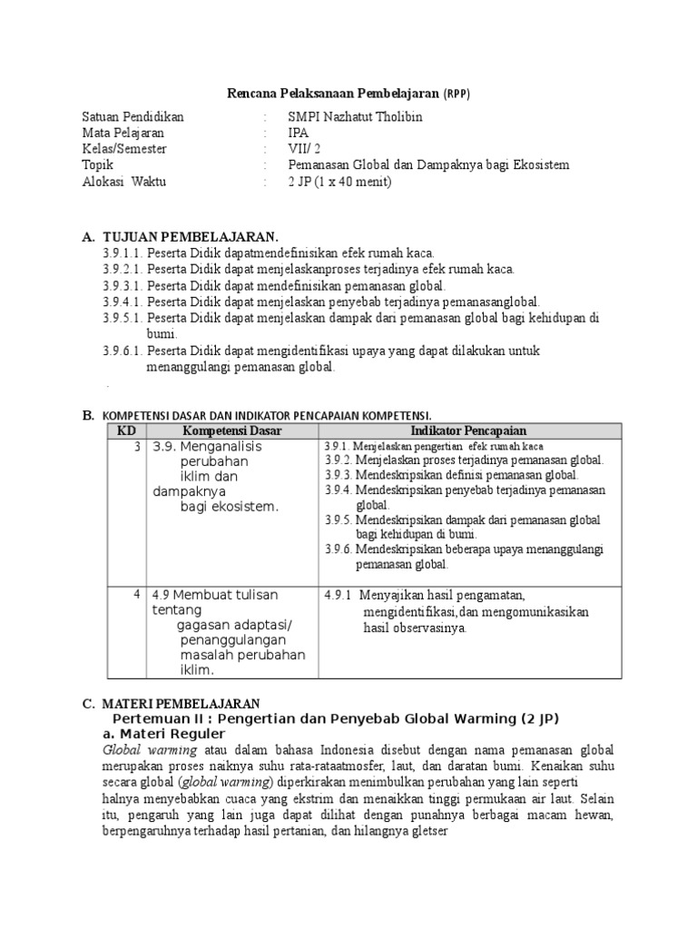 RPP Pemanasan Global Kelas VII