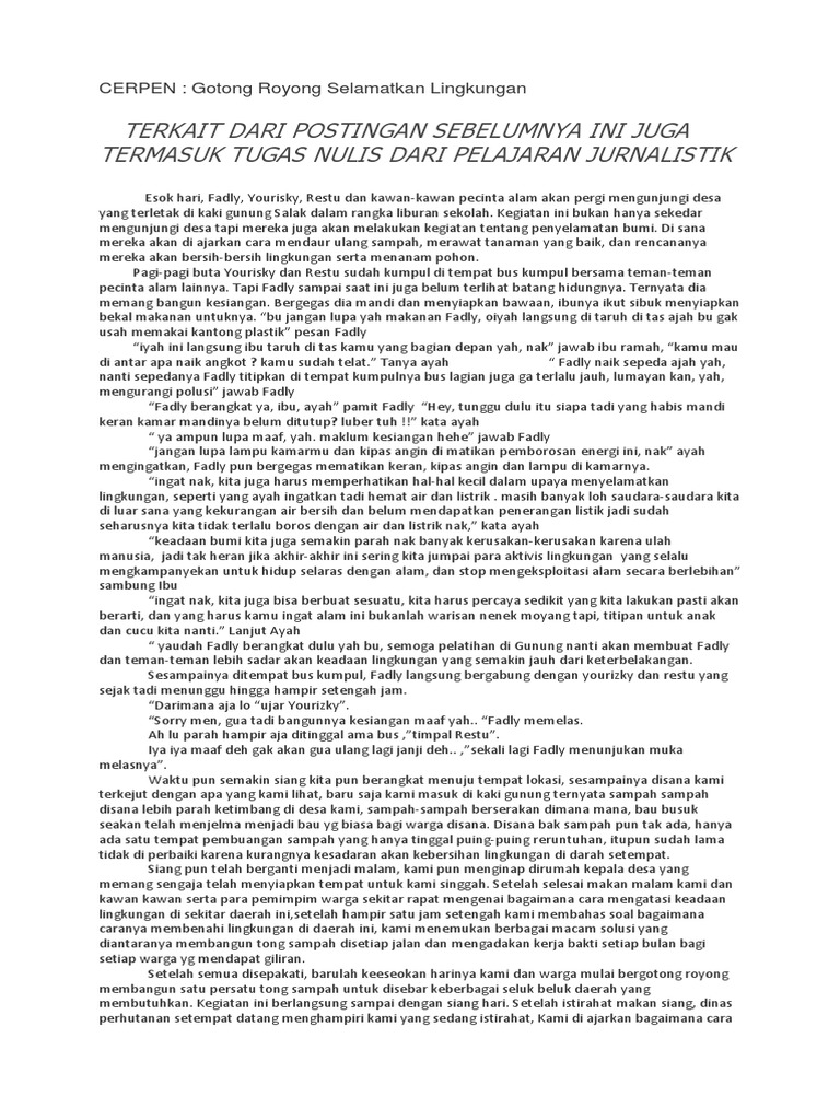 CERPEN : Gotong Royong Selamatkan Lingkungan