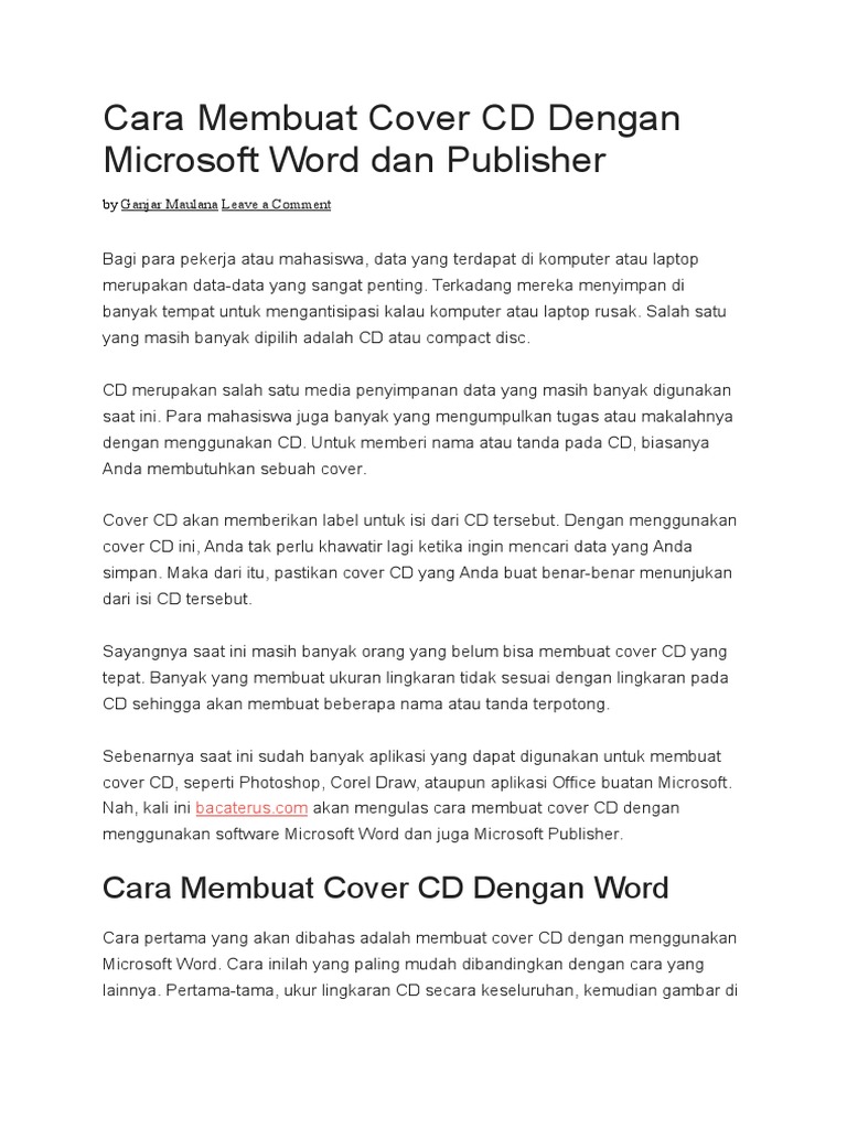 Cara Membuat Cover CD Dengan Microsoft Word dan Publisher