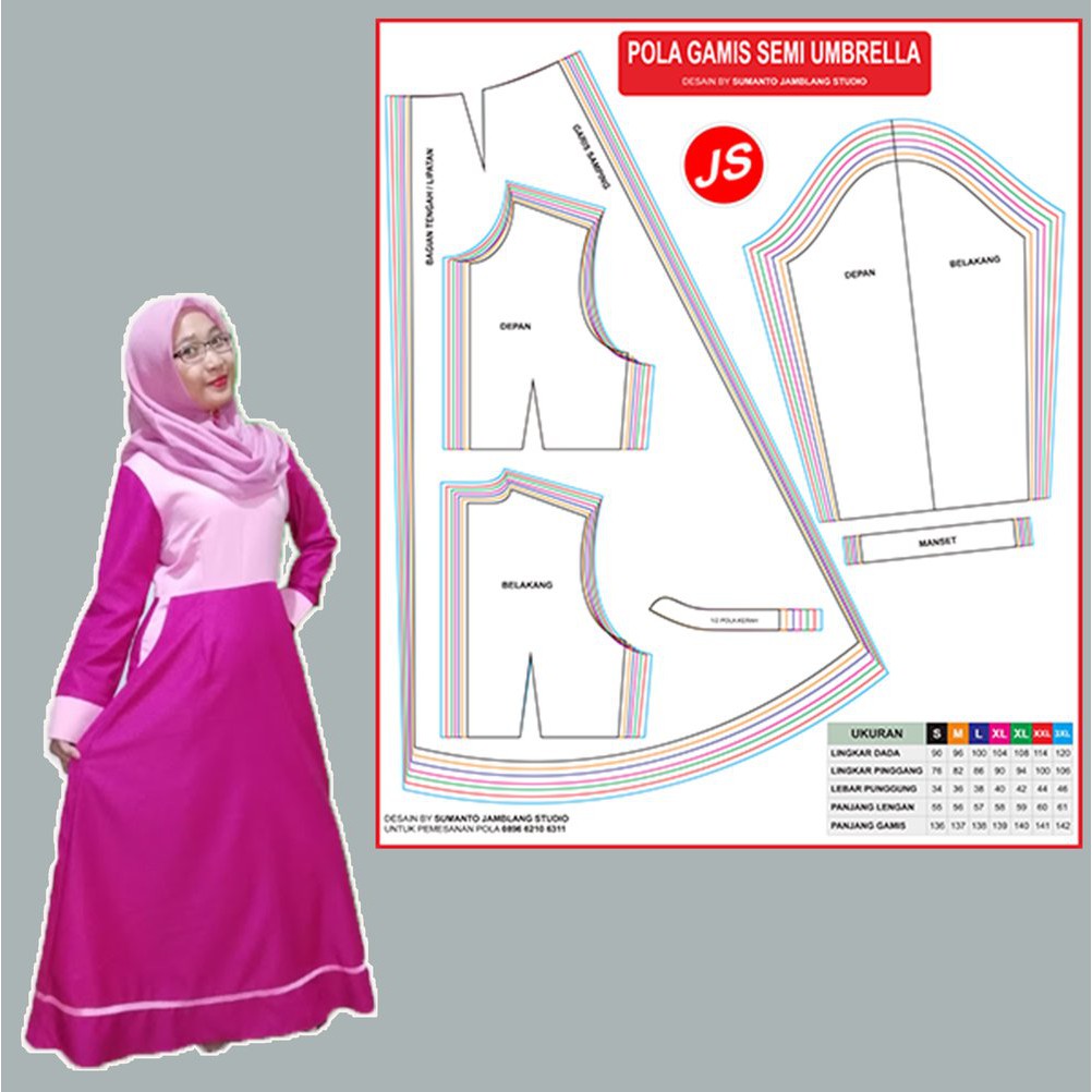 Pola Jiplak Gamis Dewasa Semi Umbrella 7 In 1 | Shopee Indonesia
