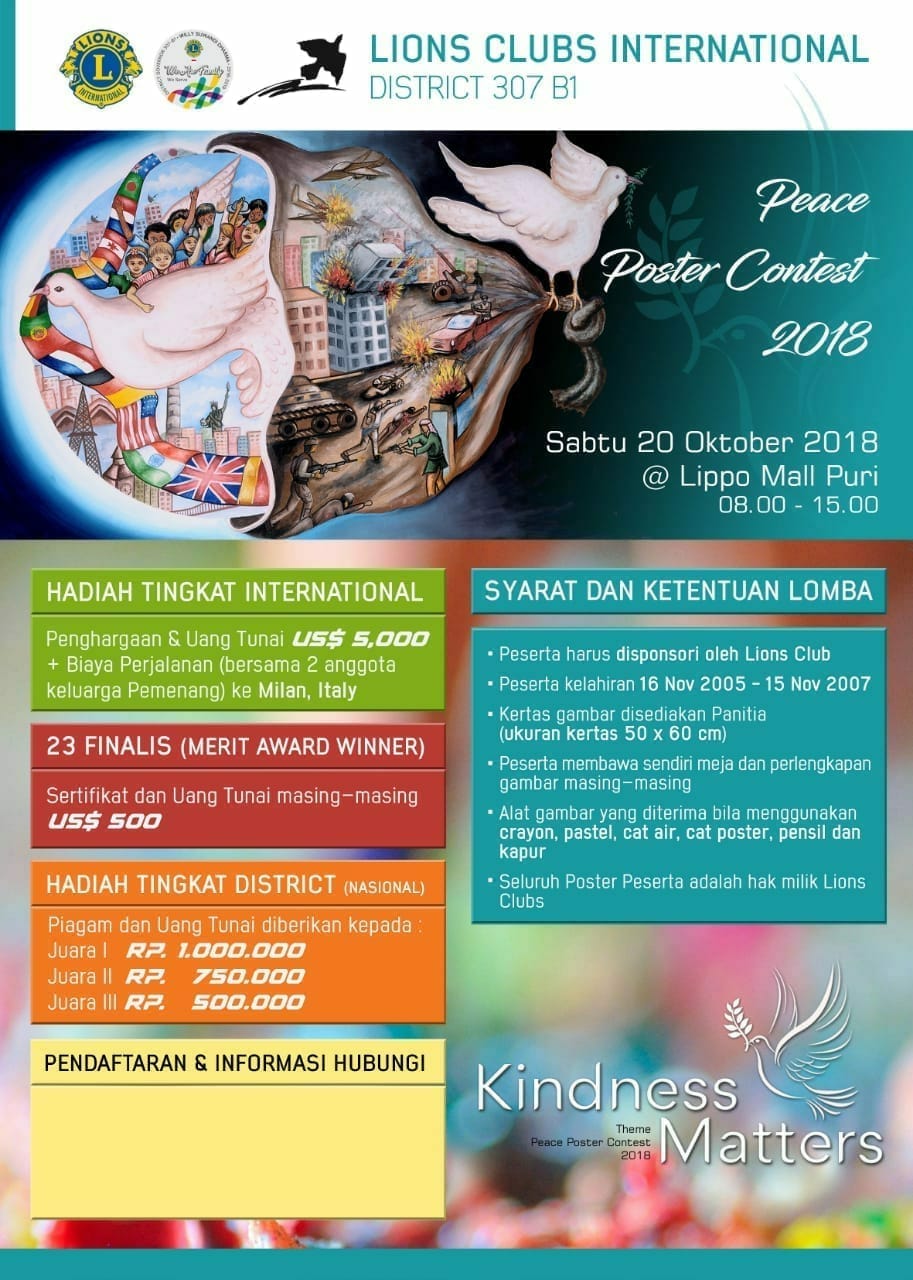 Yosep Sudarso : “Mau berkontribusi gerakan perdamaian dunia? Yuk daftarkan anak/keponakan ke Peace Poster Contest; daftar japri saya atau Lions Club terdekat. @SekolahCikal @sekolahantara @msi_sai @uphimpactslives @pelita_harapan …