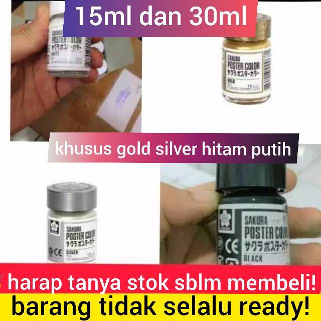 SAKURA POSTER COLOR GOLD SILVER BLACK WHITE CAT COLOUR 15ML 30ML EMAS WARNA PUTIH ABU CAT POSTER | Shopee Indonesia