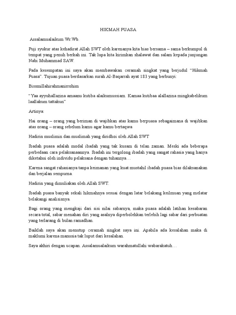 Contoh Pidato Agama Tentang Puasa | Contoh Soal Dan Materi Pelajaran 3