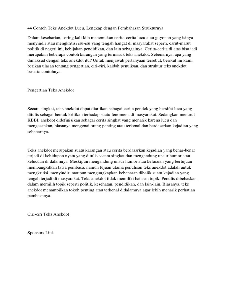 PDF) 77 Contoh Teks Anekdot / Singkat / Lucu | Quality Chanel - Academia.edu