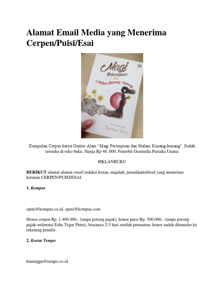 Alamat Email Media yang Menerima Cerpen/Puisi/Esai | Guntur Alam