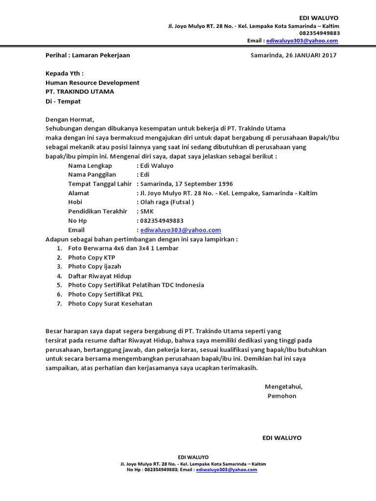 Contoh Lamaran Kerja Dan Daftar Riwayat Hidup Research Papers - Academia.edu